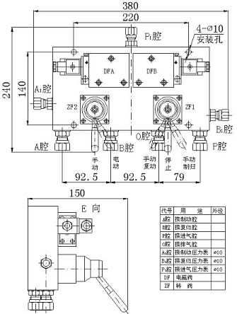 2、手動(dòng)回路:將手動(dòng)轉(zhuǎn)閥ZF2的手柄扳到手動(dòng)位置。壓縮空氣密封在手動(dòng)轉(zhuǎn)閥ZF1的壓力腔內(nèi)。