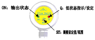 3、待流速穩(wěn)定后,調(diào)節(jié)“SET”螺絲,使流量開關從Q狀態(tài)(紅燈亮)剛好轉(zhuǎn)入ON狀態(tài)(綠燈亮)。